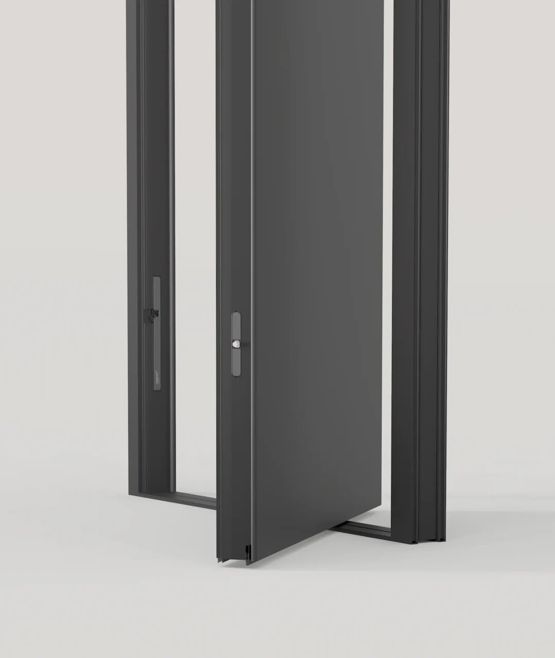 Our offset pivot axis at the top and bottom of the leaf enables effortless operation for doors up to 6 m high and 2 m wide, delivering exceptional stability and smooth movement even with heavy constructions.